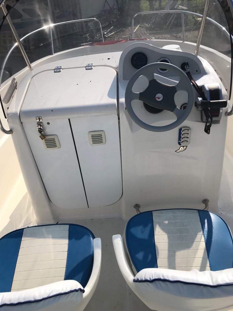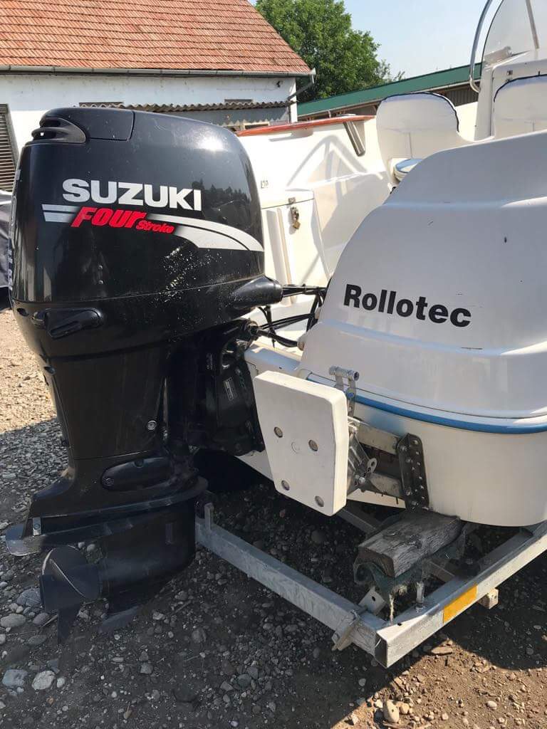 A vételár tartalmazza a tároló utánfutó vételárát is. (Külön-külön nem eladó.) A hajó édesvízben, kizárólagosan a Duna Deltában volt használva, évente kb. 2 hetes időtartamban, így az állapota is ennek megfelelő, rendszeresen karbantartott, apróbb használati nyomoktól eltekintve, hibátlan. A hajó orrában sérülésmentes, eredeti napozómatracok szolgálják a kényelmet, melyek eltávolítása esetén egy asztalt kapunk. A hajóhoz 2 db. eredeti szék is tartozik, továbbá több zárható tárolórekesz található rajta. A motorállás alatti kabin alvásra nem, viszont tárolásra annál inkább alkalmas. A 90 LE-s SUZUKI motor pedig megfelelően gondoskodik a hajó síklásáról. Megtekinteni előzetes telefonos egyeztetés után, bármikor lehetséges Pest megyében. Bármilyen további kérdésre szívesen válaszolok.