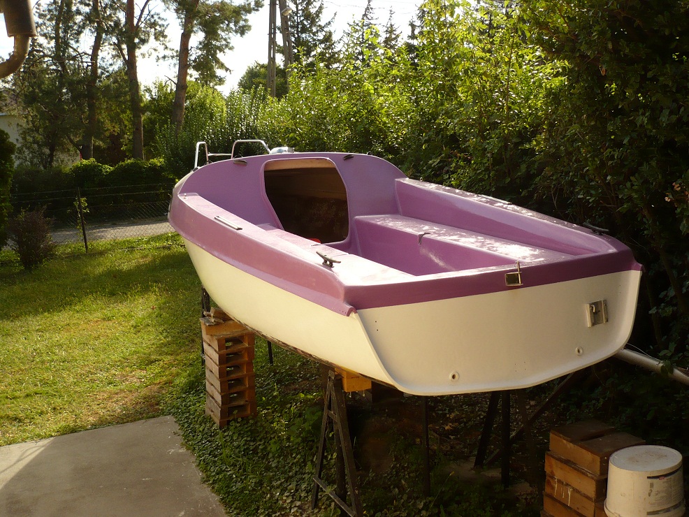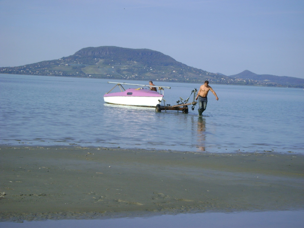 4 személyes, (17,5 lábas) schwertes vitorláshajó, vízvonal alatt javításra szorul, sójakocsival, érvényes (2020.04.22.-ig) német lajtsrom számmal (R-S 720), a hajólevél szerint: 1990 évjáratú.