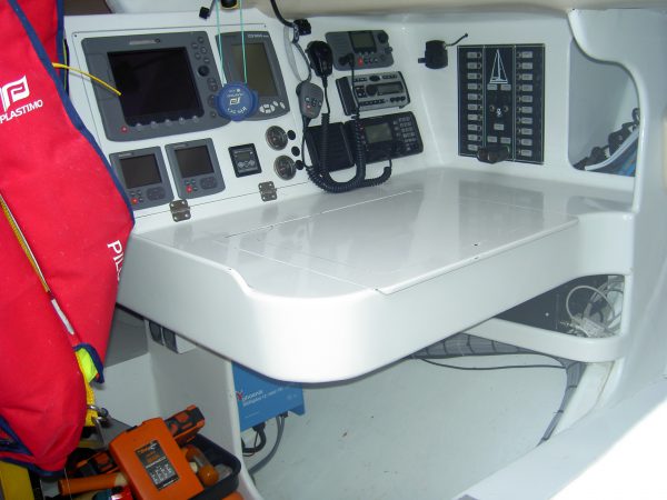 Műszerek: Raymarine – ST 60 Tridata + Wind, 3 db ST 60 Multi az árbocon (boom alatt), 2db ST 70 Multi a térképasztalnál, E 80 chartplotter, Ray 218 E VHF DSC rádió