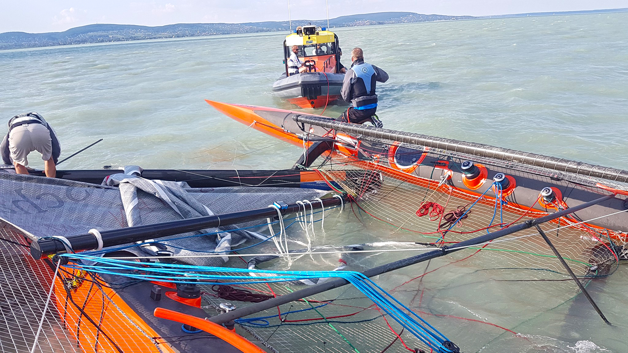 Kékszalagra készülő katamarán szenvedett balesetet a Balatonon