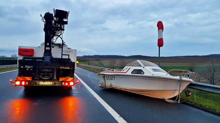 Motorcsónak zuhant az M7-es autópályára egy trélerről