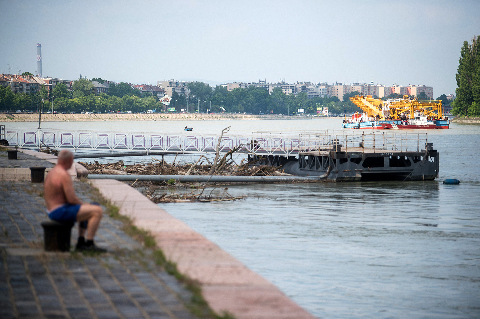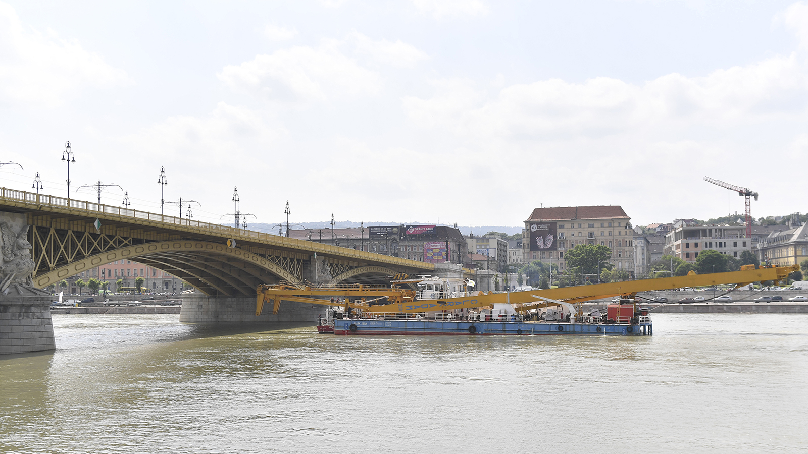 Az úszódaru mozgását a katasztrófavédelem Szent Flórián tűzoltóhajója segítette.