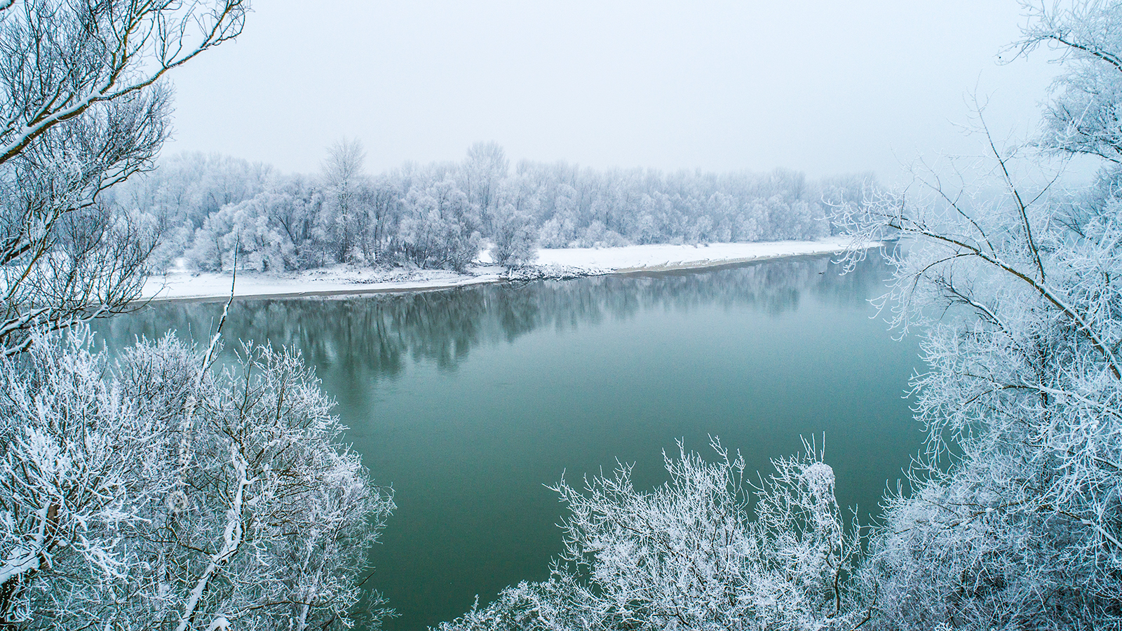 Mesebeli drónfotók a havas, zuzmarás Dráváról