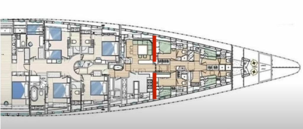 Ugyanakkor, ha hátul valamilyen oknál fogva, akár emberi hibából is nyitva van valamelyik ajtó és víz árad be, akkor is csak két rekesz telhet meg vízzel. A második válaszfal, a gépházat az utastértől elvásztó falon nincs ajtó, nem nyitható. Attól még a Bayesian úszóképes maradt volna.