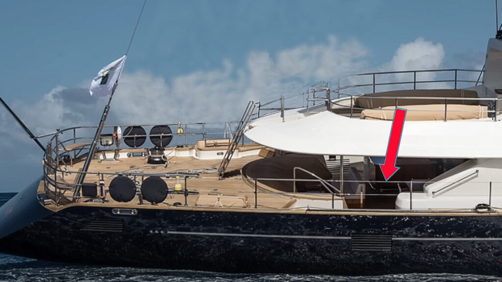 Ezen a képen nyitva van a hátsó tároló / fürdőplatform, és a bal oldalon lévő a Lazarette-ajtó