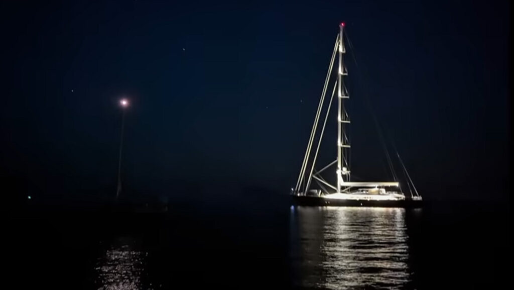 Az utolsó fotó a Bayesienről, az elsüllyedése előtti este készült. Jobbra tőle a sóner – Fotó: Fabio La Bianca / PA Media