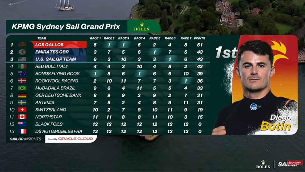 A nap vesztese a hazai pályán vitorlázó Tom Slingsby és csapata a Bonds Flying Roos lett. Két hatodik hellyel az utolsó, a hetedik futam előtt is még benne voltak a legjobb háromban, de azon az utolsón katasztrofálisan rosszul vitorláztak (10. hely), és összetettben visszacsúsztak az 5. helyre. A döntőbe így a Taylor Canfield vezette US SailGP Team jutott, amely igazán vaskos meglepetésnek számít.