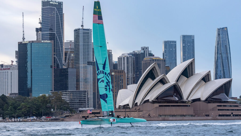 A US SailGP Team a híres OPeraház előtt – Fotó: Jason Ludlow / SailGP