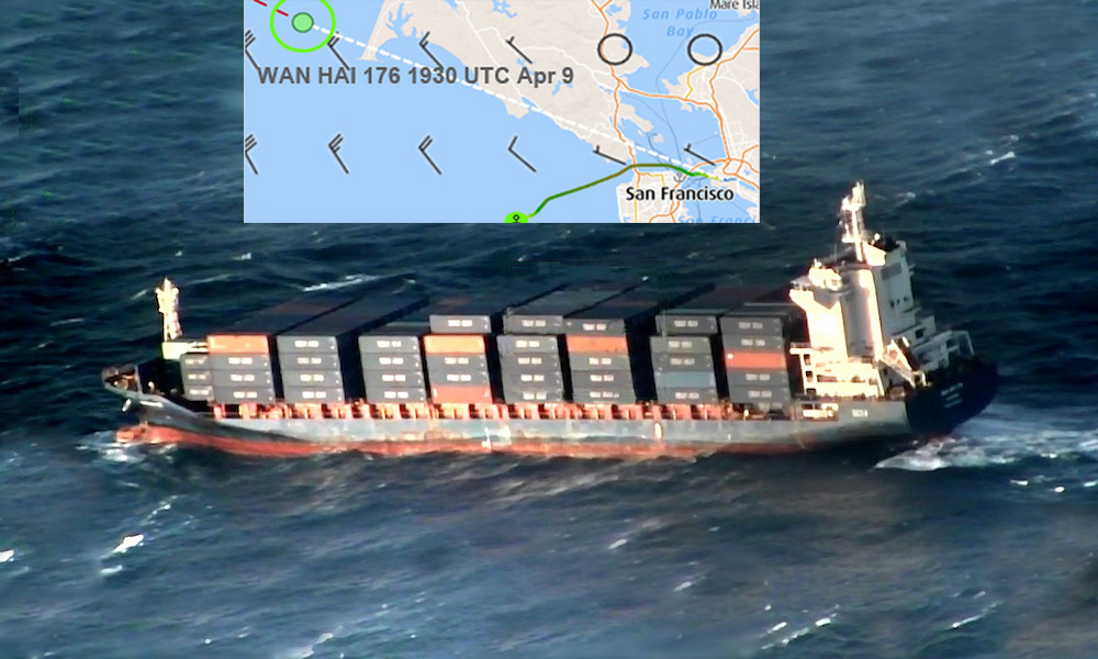 Még április 8-án álltak le a gépei a 172 méter hosszú 2016-ban épült Wan Hai 176 szingapúri konténerhajónak, de az US parti őrség szerint még mindig nem sikerült megállítani a sodródását. A hajó a kaliforniai Point Reyestől 12 mérföldnyire vált haladásképtelenné és így kormányozhatatlanná. A Wan Hai viharos szélben és erős hullámzásban sodródik a kaliforniai partok felé.