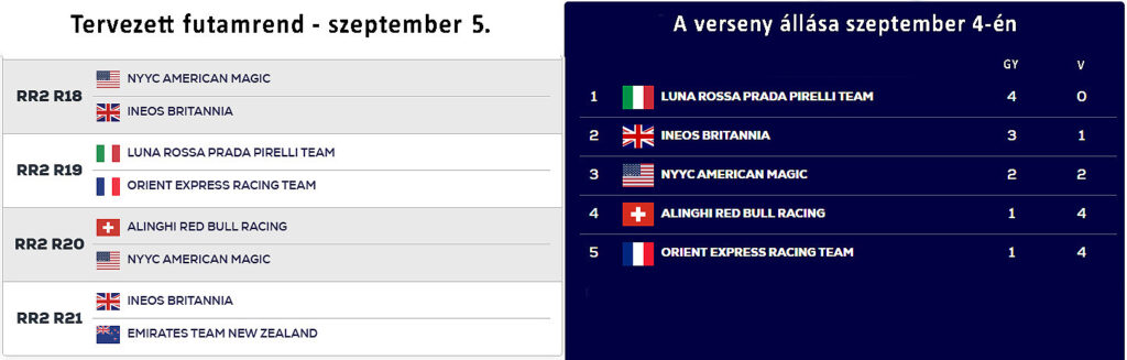Ezután a még erre a napra tervezett két futam (USA-GBR, és ITA-FRA) pedig elmaradt. Szerda pihenőnap volt, így azokat ma pótolhatják.