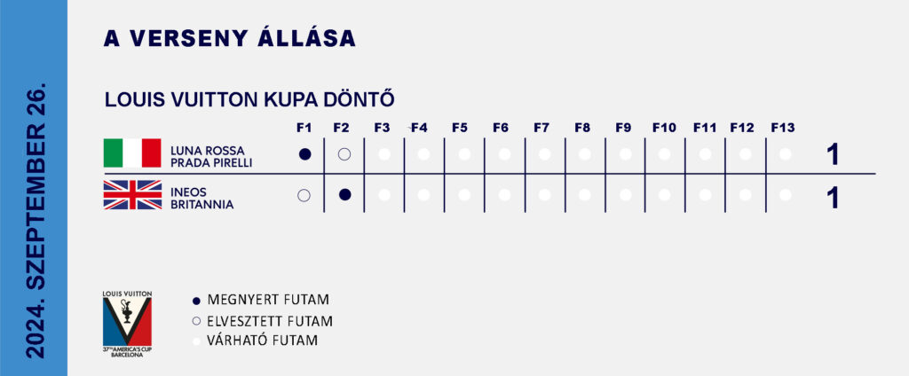 Ez nem jelenti azt, hogy az INEOS Britannia lett az esélyesebb, mert a hajók és a csapatok között továbbra sincs markáns különbség. Apróságok dönthetnek minden futamon. De, gyanítom ezúttal a Luna Rossa Prada Pirelli nem számíthat 7-1-es győzelemre, mint a legutóbbi Louis Vuitton Cup döntőben.