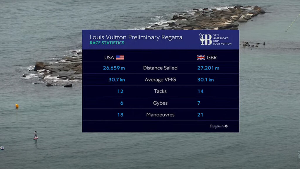 A britek masszív hajója a rajt után egyetlen egyszer tudott elvitorlázni az American Magic előtt, de aztán Tom Slingsby vezetésével az amerikai hajó egy jó szélforduló vagy frissülés elcsípésével átvette a vezetést, és azt már nem engedte ki a kezéből, símán verve a brit egységet.