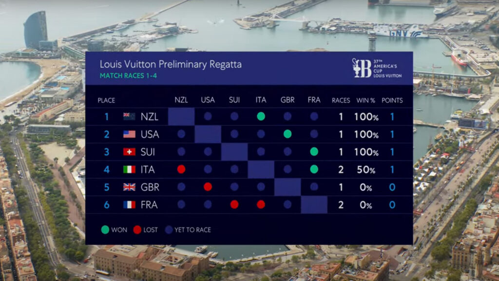 A negyedik meneten az olasz hajó a franciákkal találkozott. Quentin Delapierre-ék már a rajt előtt kiütötték magukat a pálya elhagyásával, vagyis büntetéssel indultak. Így ez a futam sem hozott izgalmas párviadalt.