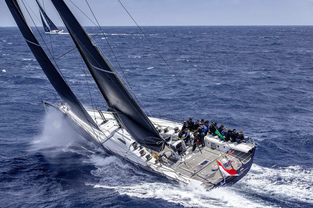 Bár nem egy osztályban versenyeztek, a két MOD70-es trimarán az Argo és a Zoulou a Start Pointig vezetett az Ultimok előtt. „A MOD-ok nagyon jó hajók” – folytatta Laperche. „Könnyűek és könnyebben manőverezhetők, így sikerült előttünk maradniuk. Ha nem repülünk a foilokon, akkor ugyanazt a sebességet tudják elérni, mint mi.”