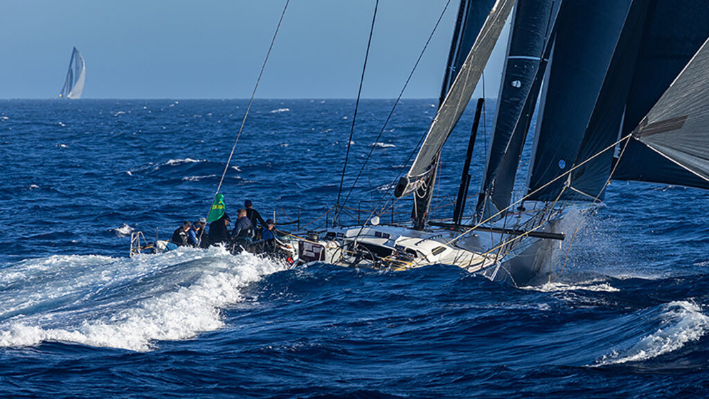 A képen a Black Jack százlábas Maxi siklik a hullámokon. Éjszaka szél kétszer ilyen erős lesz és a hullámok mérete is megduplázódik – Fotó: Andrea Francolini / Rolex