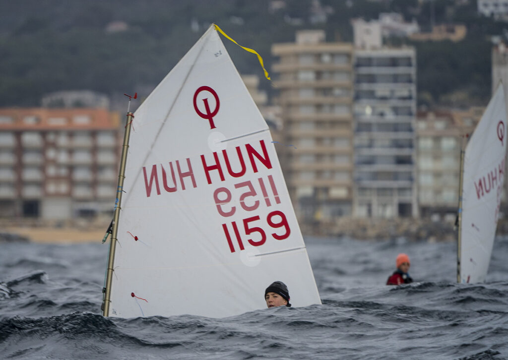 Az elmúlt héten 37 magyar optimistes versenyzett Palamósban 530 hajós mezőnyben! 12-13 éves lányok és fiúk, kőkemény szelekben és főleg komoly tengeri hullámzásban a 2,3 méter hosszú és 1.13 méter széles kis hajóikban. Erős szélben olykor borulva és rengeteget mericskézve a vizet, nagy harcban egymással. És közben iszonyúan jól érzik magukat. Öröm nézni.