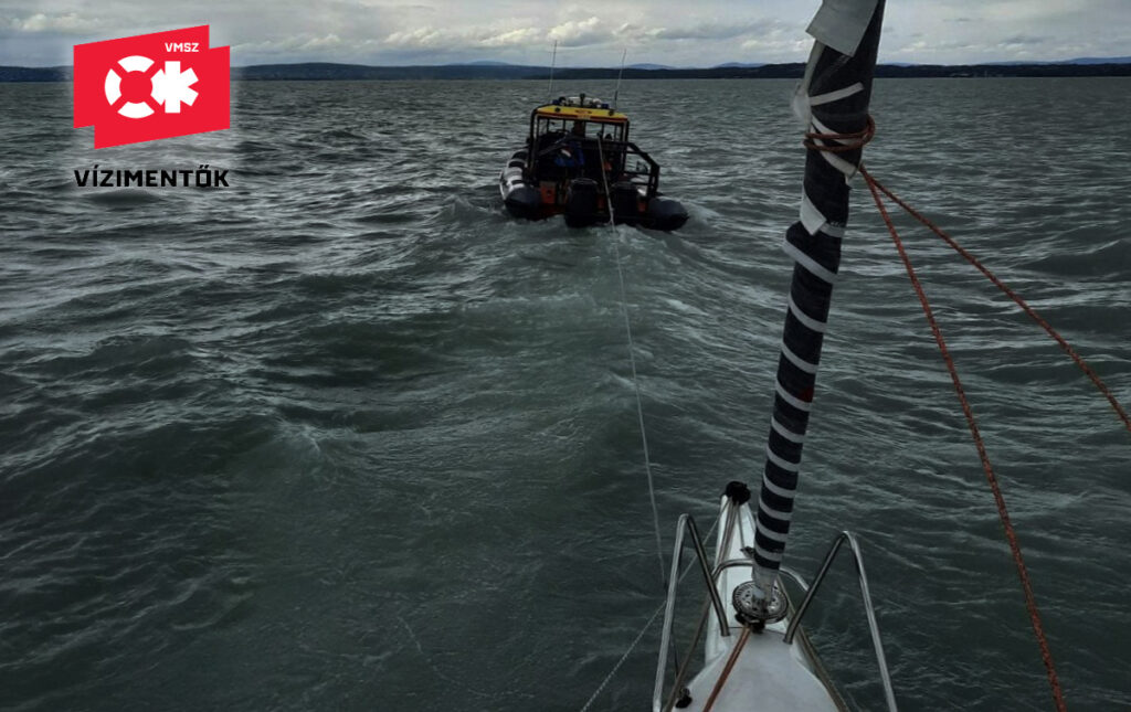Hiszen addigra, semmi idő alatt megérkezett a mentőhajó és vontára fogott minket. Sanyitól kaptunk egy fékezőhorgonyt. Azt hátrakötöttük, így segítette egyenesben tartani a hajónkat és már mehetett is a vonta Kenesére vissza.