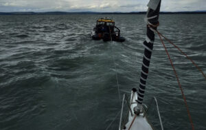 – Én két dologtól tartottam, mert ugye láttunk már ilyet, hogy nagy sebességnél előjön a kavitáció. Attól tartottam, hogy mi lesz, ha majd megjön a „kasza”, és akkor a kavitációval esünk egy fene nagyot. De, ehelyett nem estünk, mivel nem kavitált le a kormány, hanem tökéletesen működött huszonegy csomónál is. Jó, persze nem félszélben, nem az igazán kavitációs irányban mentünk, hanem (a szélirányhoz képest) 120–130 fokon mentünk lefele, már, mint a vadmalac. Az ott kevésbé érzékeny, inkább a 90–100 között szokott előfordulni, de a lényeg, hogy nem kavitált.