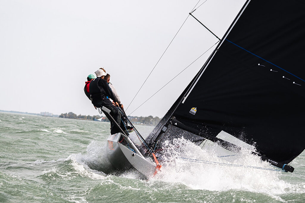Szóval a versenyen mielőtt jött a kasza, felkapaszkodtunk magasra, mert északról lehetett várni. Aztán megjött ez a huszonvalahány csomós fújás, amelyik odaböffentett néhány harminc felettit is. Ettől aztán 16-tal mentünk, aztán 17 csomóval. Jött a nagyobb nyomás, akkor gondolkodott kicsit, hogy lefúrjon-e vagy sem, majd úgy döntött, hogy nem fúr le. Kiköpte a Balaton az orrát, mert van ott elől benne volumen rendesen, és utána mentünk huszonegy-féllel!