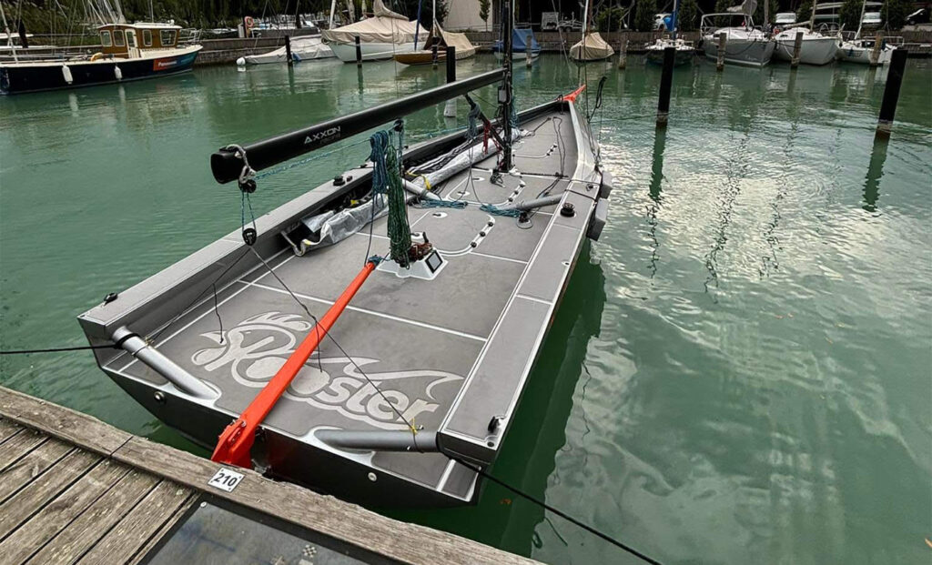 Ha van energiád rá, akkor ne hagyd ki, mert ez egy Mark Mills hajó! Eddig nem ismertem, da amikor megnéztem, hogy miket tervezett már ez az ír ember… (például: az offshore foiler Flying Nikka, a 100 lábas Wallycento, vagy a Maxi 72 világbanok Alegre) Már csak az apró ötletei is elkápráztatóak. Nincsenek (kötél) indítópontok fúrva a hajóra, hanem a struktúra van úgy kialakítva, hogy például a kitolható csőkeret aljára vannak lashingelve (kötélhurkokkal rögzítve) az indítópontok. Nincs megfúrva, meg ilyen átmenőcsavar, meg mögé nyúlok, és effélék. Minden kötélből van. Meg egyáltalán ez az egész gondolatrendszer, hogy négy ember erre felül, és tényleg a 6 csomótól a 30 csomós szélig ugyanazzal a fokkal és grósszal megy. És halad, de nem is kicsit! És egy 120 kilós beépített dízelmotorral, meg 360 kilós kíl-bulbával egy tonna az egész. Ugyanakkor az árbóca legalább egy méterrel alacsonyabb a mi nyolcasainknál (a szólóversenyekre alkotott 8M Open hajókénál), de még így is tud teljesíteni krajcban! Még külön öröm, hogy a Szüreti Regattáról a végén egyben hazahoztuk, amikor „az anyagi kár jelentős” jeligére vitorlázott a mezőny.