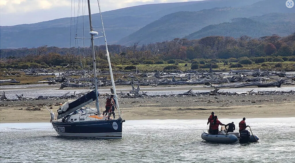 Motoros hozza a vontatókötelet a zátonyról való elszabadításhoz – Fotó: globalsolochallenge