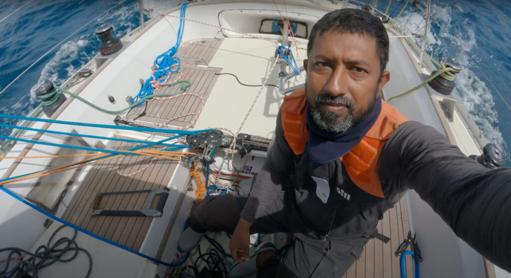 Abhilash Tomy (India) a Rustler 36 ” Bayanat” fedélzetén. annyi nehézséget megoldott, hogy a verseny rendezői már McGyvernek becézik – Fotó: Abhilash Tomy