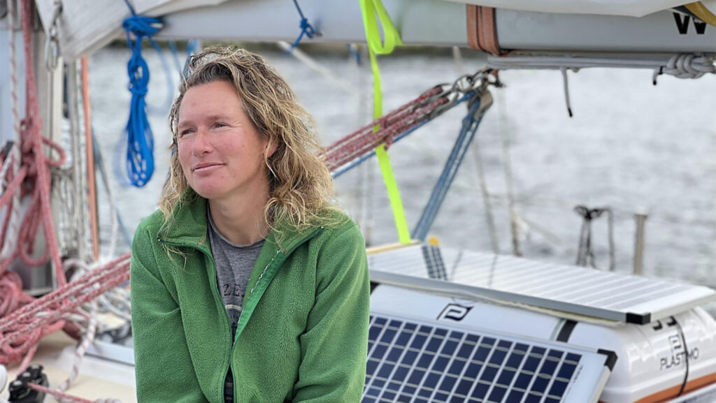 Kirsten Neuschäfer a Cape George 36 ” Minnehaha” fedélzetén még novemberben a hobarti médiakapunál – Fotó: Don & Jane GGR
