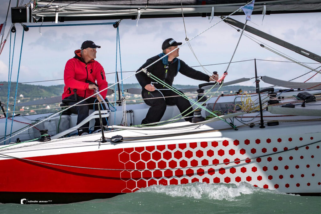 Vagyis sokoldalúan használható hajót szerettem volna. Legyen alkalmas day sailingre, de külföldi egykezes-négykezes-csapatos versenyekre egyaránt. Kis személyzettel lehessen normálisan versenyezni. Kardinális nehézségnek látom a magyar nagyhajós vitorlázásban, hogy egy 8-10 fős legénységez címlistában kell húsz ember, aki bármikor mozgósítható. Erre a hajóra feleannyi elég a versenyképes használathoz. A Balatonon ott lehet lenni vele bármilyen versenyen az élmezőnyben viszonylag kis létszámú legénységgel.