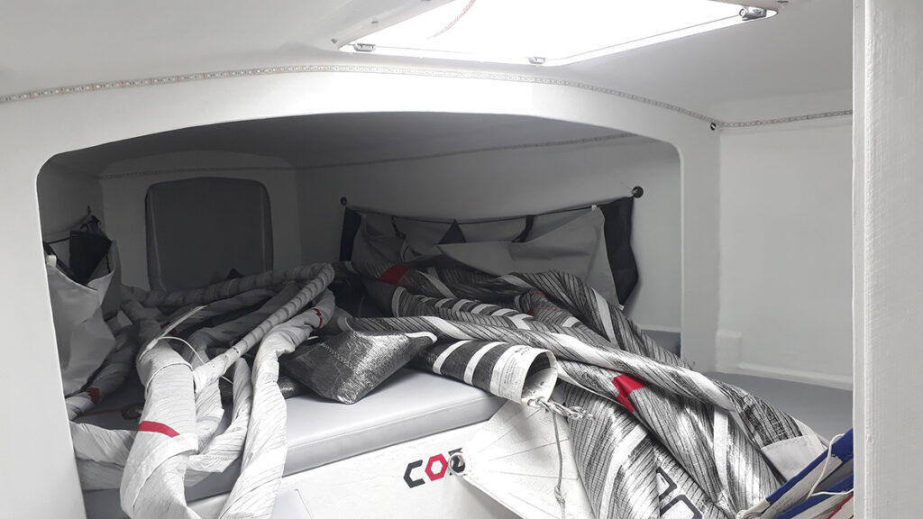 Az orrkajüt tágas, de persze olykor vitorlatároló is