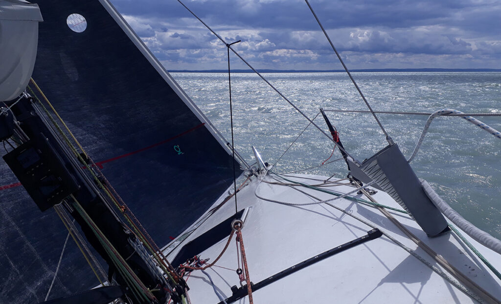Van még hozzá egy az orrsudárról induló kisebb génua, meg egy nagy gyengeszeles darab, amelyik az orrsudár csúcsától gyakorlatilag a hajó végéig ér. Ez nagyon hasznos a balatoni körülmények között.