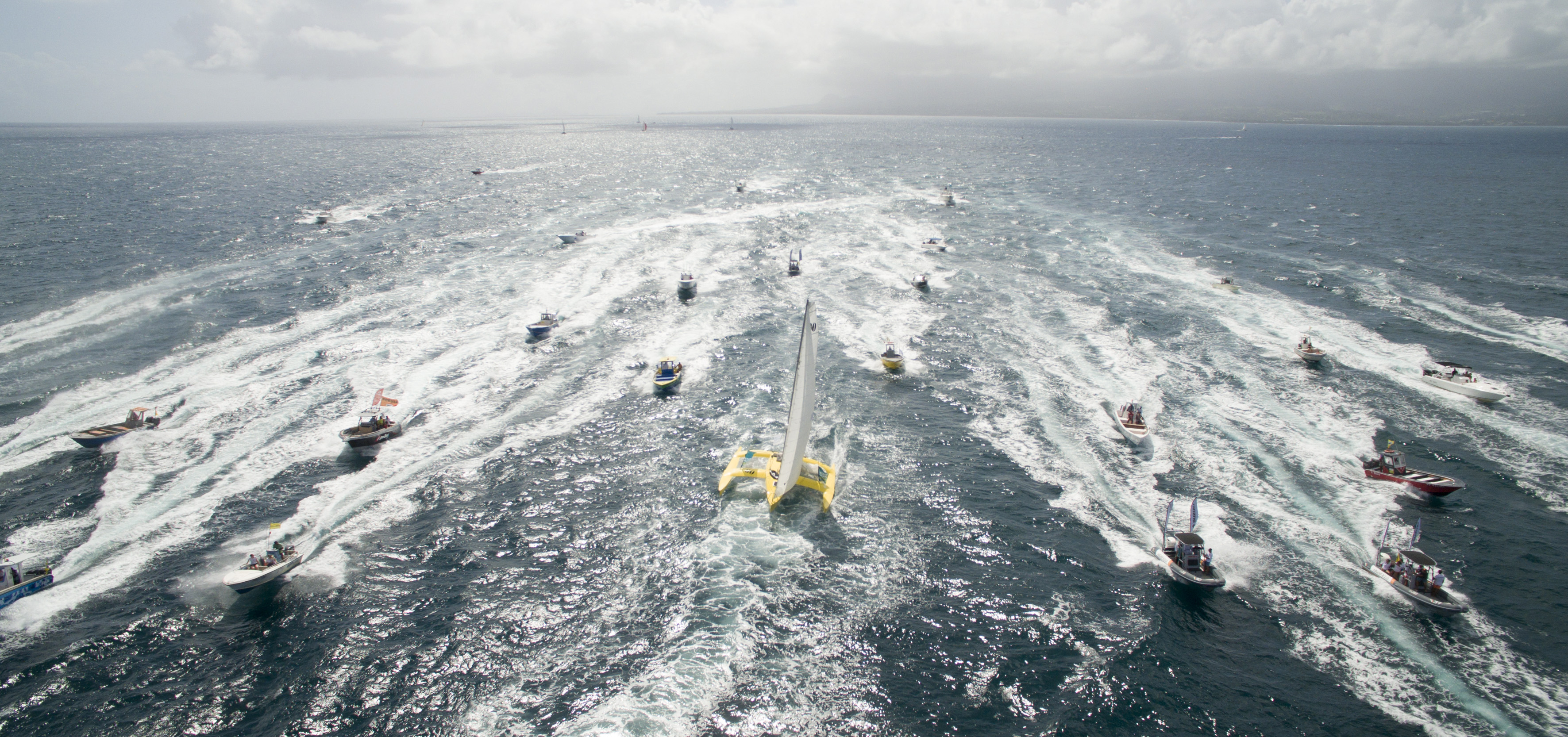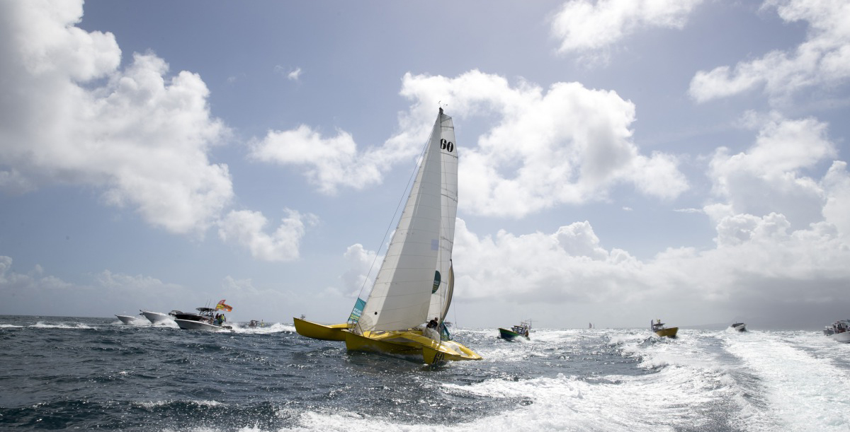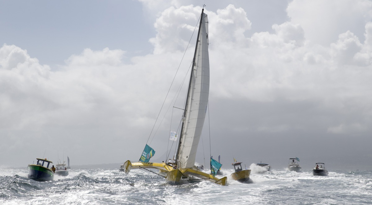 Aztán nekivágott és a tőle megszokott versenyzői hozzáállással hajtott. Az utolsó napokon egy az ő sárga Happy-jéhez hasonló 12 méteres trimaránnal küzdött, majd az utolsó mérföldeken még egy hajót megelőzve a Multi Rhum osztályban negyedikként ért célba november 25-én, vasárnap délután.