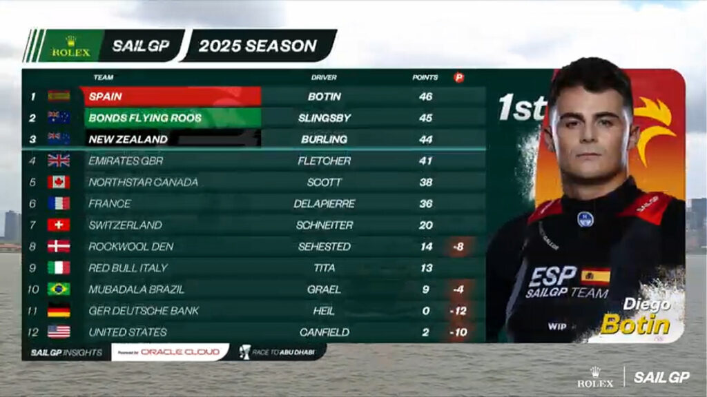 A döntő futamon aztán a tavalyi szezon meglepetésgyőztesei ellentmondást nem tűrő magabiztossággal söpörték be a győzelmet. Diego Botin és csapata ezzel az első olyan csapat, akiknek sikerült már két versenyt is megnyerni az ötödik SailGP szezonban.