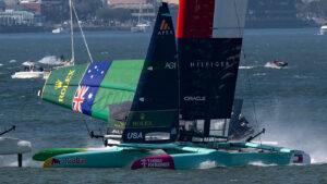 A szezon hetedik versenyét megelőző pénteki napon az egyik edzésfutam rajtja utáni első pályajelnél való ejtés közben elszállt a francia hajó jobb oldali testéről a kormánylap. A csaknem csúcssebességen, közel  50 csomós, 90 km/órás tempóval haladó F50-es orra bukva azonnal megállt. A mögöttük száguldó ausztrál hajó Tom Slingsby csodálatosan gyors reakcióidejének köszönhetően alájuk ejtve kikerülte a megtorpanó francia F50-est.