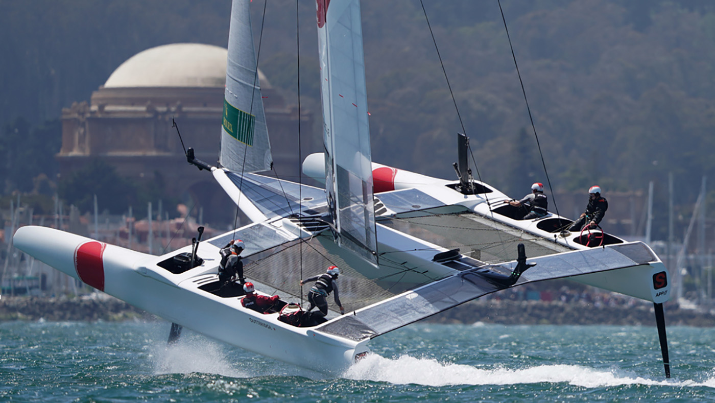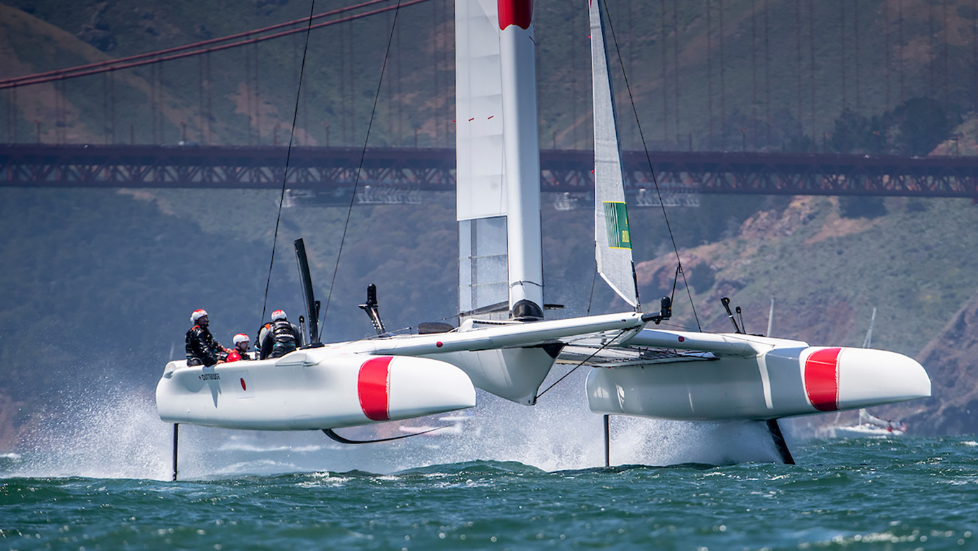 A Japan SailGP Team Nathan Outteridge vezetésével 2019-ben San Franciscóban – Fotó: Eloi Stichelbaut / SailGP