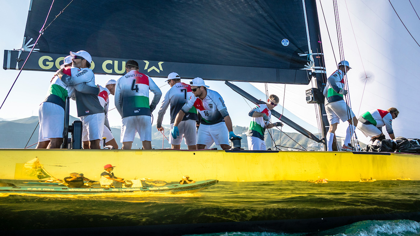 Pedig még a második krajc elején a génua is lejött, vagy leengedték mert valami keveredett a gennakerrel. De így is nagyszerű cirkálással feljöttünk a két éllovasra, miközben Argentína lemaradt. Ezúttal Malajzia és USA forgatta egymást az első két helyen, így Berecz Zsombiék felzárkóztak. Sőt! Előzték az amerikaiakat és Malajziával együtt értek a bójához.