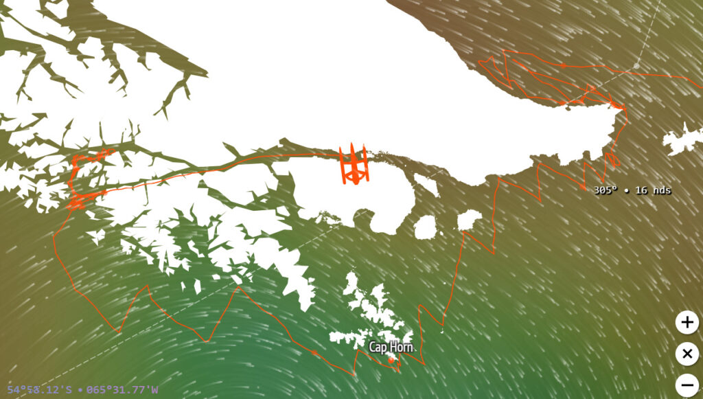 Jean Luc Van den Heede 2004-ben a masszív Adriennel vitorlázva nagyon gyorsan túljutott a Horn-fokon át a Csendes-óceánra
