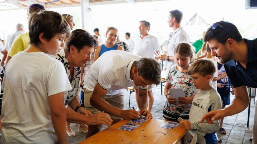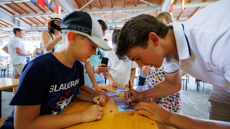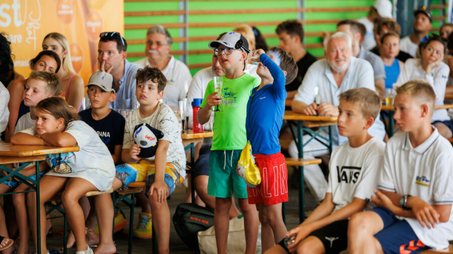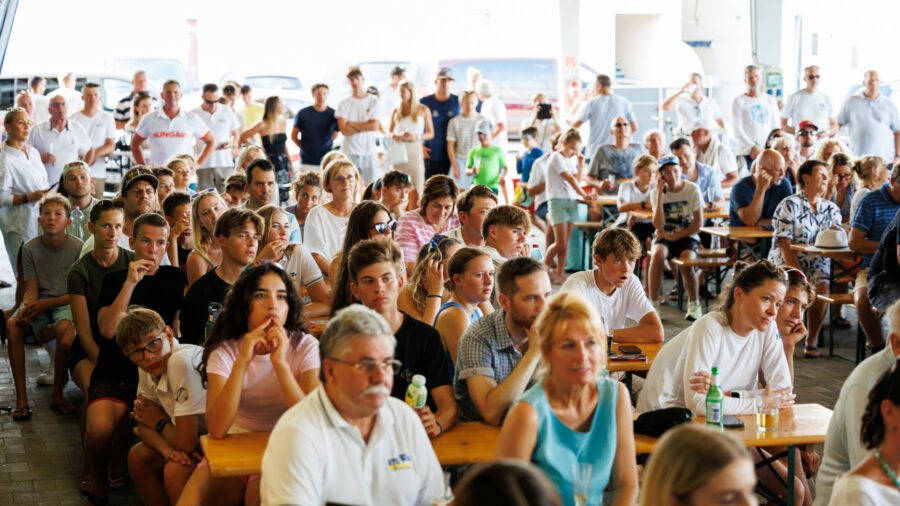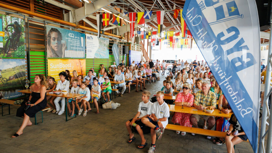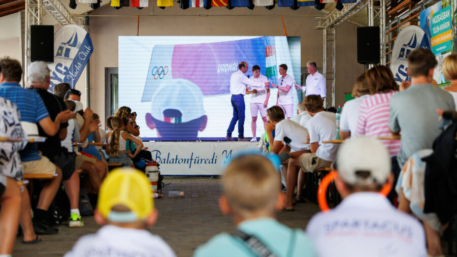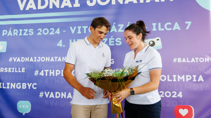 Vadnai Jonit, a Párizsi Olimpia ILCA 7 hajóosztályban, az egyszemélyes férfi dingi kategóriában 4. helyezést elért vitorlázóját ünnepeltük augusztus 14-én egyesülete a patinás Balatonfüredi Yacht Club vitorlástelepén (Balatonfüred, Zákonyi Ferenc utca 2.). Tele lett a telep. A színpad előtti ülőhelyeken túl, kívül is álltak az érdeklődők. Talán senki sem számolta meg, de legalább két-háromszáz ember figyelte a színpadi köszöntést, és hallgatta Joni szavait. Aztán akadt neki dolga a fényképezkedés és autogram osztás során is