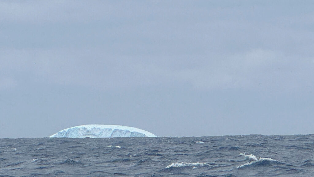 Január 4-én többen is találkoztak ezzel az óriási jégheggyel, messze a virtuális jéghatár felett, a Némó pont vonala közelében. 2008 óta először találkoztak itt, ennyire északon jégheggyel a versenyzők. – Fotó: Conrad Colman
