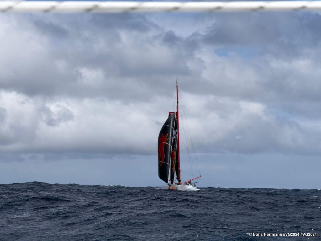 Boris Herrmann ezen a csoporton belül is jól tör előre. Emlékezetes fotókat és videót küldött Yannick Bestavennel való találkozásáról, ahogy hátszélben keresztezték egymást.