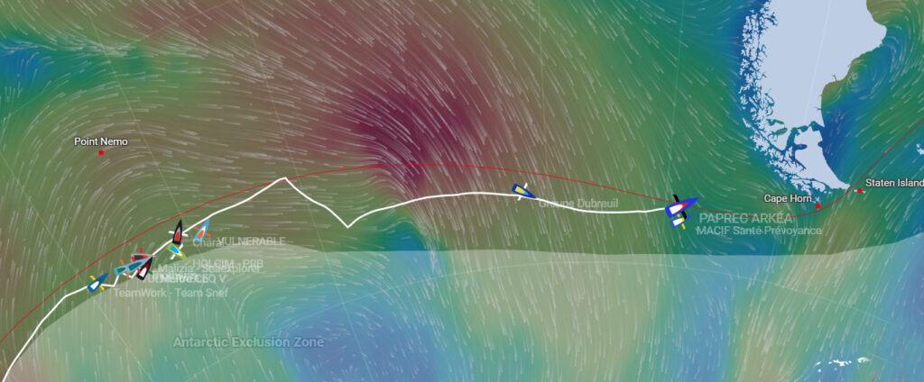 Dalin nagyszerű, de Richomme hátszélben gyorsabb. Seb Simon egy foillal is nagyszerűen tartja magát, Herrmann és Justine Mettraux előrébb varázsolták magukat, Pip Hare az árbócát vesztette, de azóta viszi a nézettséget a versenyzők elől, Xu pedig lenyűgözően hajt a hátsó traktusban…