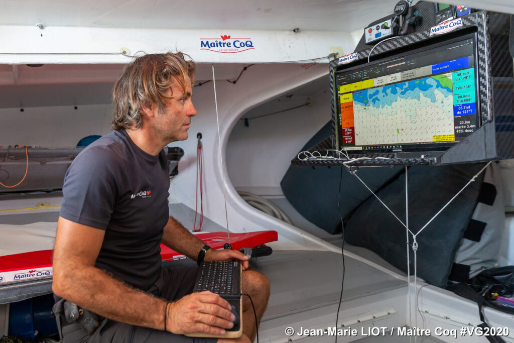 Yannick Bestaven a navigációs asztalánál