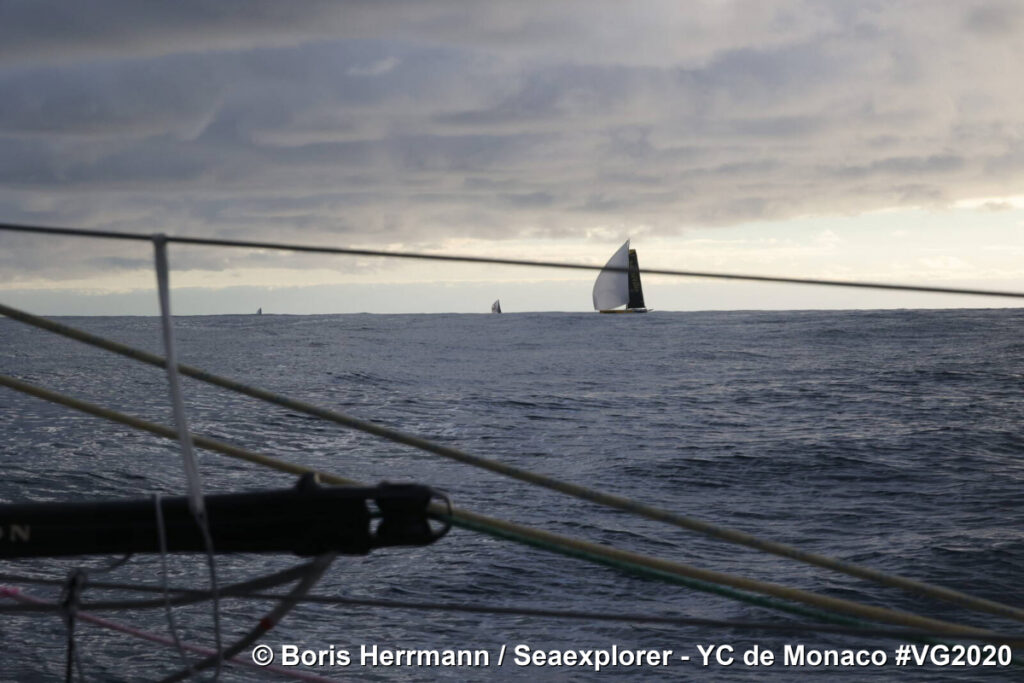 Mögöttük öt hajó – a három hagyományos uszonyos (Le Cam, Seguin és Dutreux) valamint Herman és Burton – december 15-én még látótávolságon belülre kerülve egymást fotózták az Indiai-óceánon. Soha nem volt még ennyire szoros a Vendée Globe féltávnál! Azóta persze távolodtak egymástól, de a negyedik helyen haladó Boris Hermann és a kilencedik Giancarlo Pedote között még most is csak 120 tengeri mérföld a távolság.